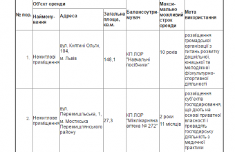 Управління майном спільної власності Львівської обласної ради оголосило про намір передати в оренду нерухоме майно спільної власності територіальних громад області.