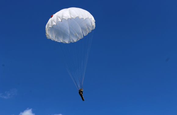У рамках заходів бойової підготовки львівські десантники виконують стрибки з парашутом.