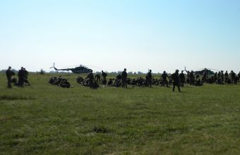 «По тривозі були підняті в повітря гвинтокрили, на яких розмістились бойові підрозділи 80-ї окремої бригади ВДВ України. Добре знайомі нам ще з весни 2014 року львівські десантники швидко десантувались із розгорнутих у бойовий порядок гвинтокрилів, які наповнили конотопське небо тривожним гудінням.