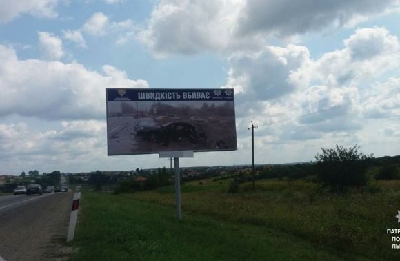 Патрульна поліція Львова спільно з Львівська обласна державна адміністрація розпочали соціальну кампанію проти аварійності на дорогах. На територію Львівщини розмістили площини з моторошними ДТП, які забрали людські життя через неуважність та швидкість», – поінформували також і управлінні патрульної поліції.