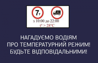 Рух великовагового транспорту загальною масою понад 24 тонн і навантаженням на вісь понад сім тонн при температурі повітря +28 градусів і більше автомобільними дорогами Львівщини заборонено з 10:00 до 22:00.