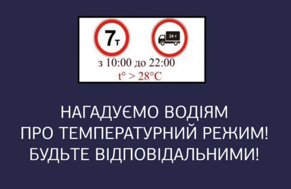Рух великовагового транспорту загальною масою понад 24 тонн і навантаженням на вісь понад сім тонн при температурі повітря +28 градусів і більше автомобільними дорогами Львівщини заборонено з 10:00 до 22:00.
