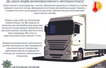 Якщо показники термометра сягають в денну пору доби вище +28°, то транспортні засоби фактичною масою понад 24 тонни і навантаженням на вісь сім тонн не можуть продовжувати рух автомобільними дорогами загального користування.