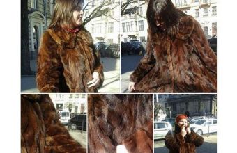 Норкова шуба – кольору «молочний шоколад», зі шматочків, стан – на «5». Хутро – благородного коричневого кольору з червонуватим відливом, з густим підшерстком і блиском норки. Розмір виробу – приблизно 54-56, на фото ріст дівчат – 178 і 160 см.