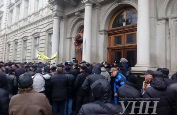 У Львові біля місцевої ОДА пікетують колишні працівники міліції, які перекрили вулицю Винниченка й вимагають перерахунку пенсійного забезпечення та вимагають відставки глави МВС Арсена Авакова. Про це повідомили сьогодні, 20 грудня, в інформаційній агенції «УНН», де також опублікували фото з місця події.