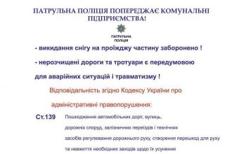Патрульна поліція Львова апелювала нагадуванням цієї статті до комунальників в ілюстрованому повідомленні, опублікованому сьогодні, 11 січня, на своїх акаунті в «Тwitter» і сторінці в інтернет-мережі «Facebook».