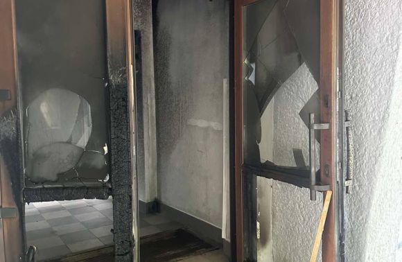 Пожежу біля входу зауважили близько 17:20 години та швидко загасили ще до прибуття ДСНС.