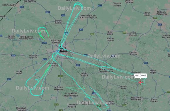 Спочатку літак з позивним "Welcome" зафіксували поблизу Дев'ятників на Львівщині близько 12 години дня. У повітрі борт перебував понад 2, 5 години.