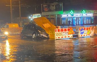 Маршрутка й автомобіль провалились під землю під час негоди а Одесі (відео)