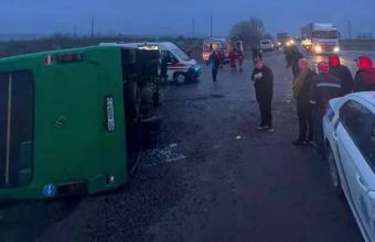 Як зазначають очевидці, маршрутка, в якій було 15 пасажирів, зіштовхнулась з автомобілем Volkswagen і перекинулася.