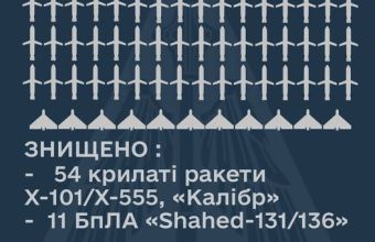 Силами і засобами Повітряних Сил, у взаємодії з іншими складовими Сил оборони України, знищено 54 ворожі крилаті ракети.