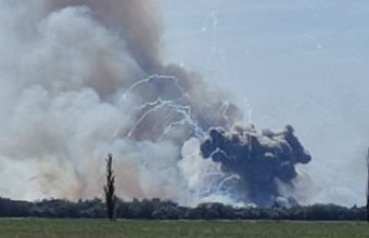 "Щодо пожежі на території аеродрому «Саки» в районі населеного пункту Новофедорівка у тимчасово окупованому росією Криму.