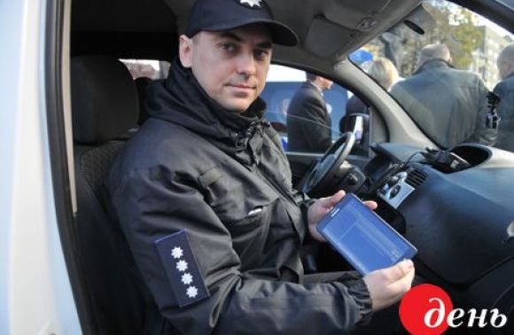 Правоохоронці продемонстрували на площі перед пам’ятником Тарасу Шевченку автомобілі, обладнані новими планшетами й відеореєстраторами.