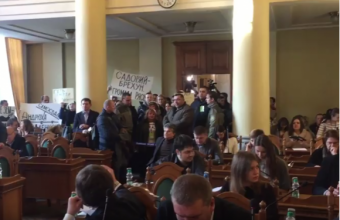 Жителі мікрорайонів Левандівка, Рясне, Рясне-2 та села Білогорща, котрі прийшли на сесію міськради із протестом проти монтажу біля їх домівок обладнання для пресування сміття. влаштували для міського голови Львова Андрія Садового коридор ганьби На початку сесії міського голови не було у залі, тому пікетувальники обурено скандували: «Садового у сесійну залу!».