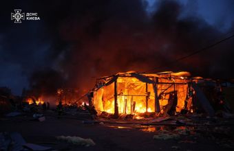 "В Оболонському районі, де внаслідок ворожої атаки сталася пожежа в офісному центрі, відбулося часткове руйнування будівлі. Рятувальники працюють на місці, - йдеться у ранковому повідомленні Віталія Кличка. - У Дарницькому районі виявили тіло загиблого внаслідок атаки ворога чоловіка. Він знаходився на вулиці, поруч з епіцентром вибуху. Особу чоловіка встановлюють".