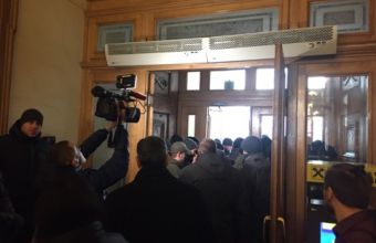 Під Ратушею зібралися кількадесят людей, однак «Муніципальна варта» стоїть на вході у будівлю в готовності приймати штурм.