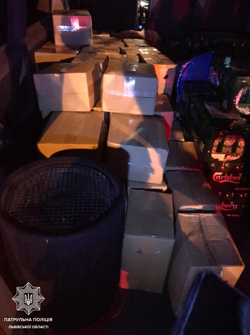 Учора близько 22-ї години на одному із блокпостів львівські патрульні зупинили автомобіль Mercedes-Benz Vito. Під час перевірки транспортного засобу в автомобілі виявили 50 ящиків із невідомим вмістом.