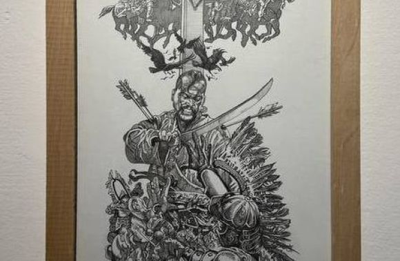 Робота належить родині художника. Це ілюстрація до поеми Ліни Костенко «Берестечко» (зображена на фото).