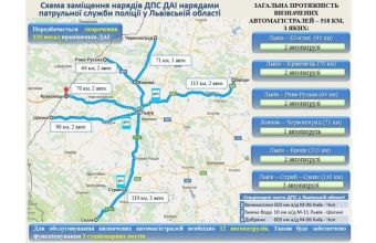 Відтак, працівників ДАІ на автошляхах державного та міжнародного значення, що проходять територією Львівської області, змінять працівники патрульної поліції. Зокрема, вони цілодобово позмінно чергуватимуть у складі 12 автомобільних патрулів на відрізках трас, загальна відстань яких складає 518 кілометрів: