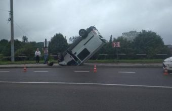 На Сихівському мосту у Львові перекинувся 24 липня догори дриґом мікроавтобус