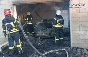 На момент прибуття пожежних підрозділів вогонь швидко поширився. В середині гаража був автомобіль.