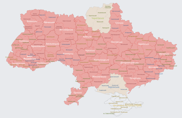 Сьогодні, 15 квітня, орієнтовно опівдні у 22-х областях України оголосили повітряну тривогу. Сигналу тривоги немає лише в Чернігівській і Херсонській областях.