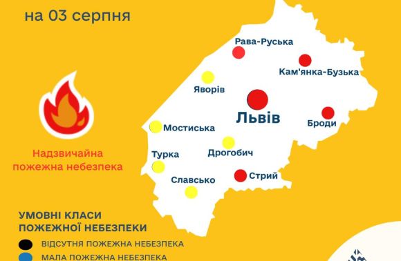 У неділю, 3 серпня, висока (4-й клас) та надзвичайна (5-й клас) пожежна небезпека.