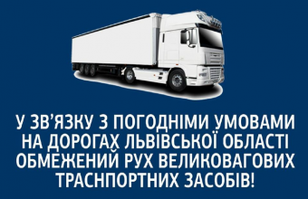 У зв'язку з погодними умовами й задля ефективної та безпечної роботи дорожньої техніки на дорогах державного значення з 19-ї години 12 грудня обмежили рух великогабаритних транспортних засобів.