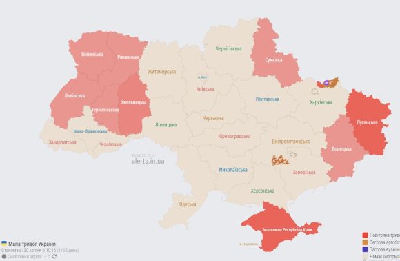 Про це інформує DailyLviv.com з покликанням на карту повітряних тривог.