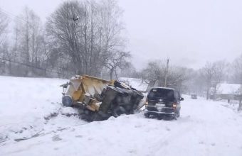 На Львівщині перекинулася машина, яка розчищає дороги