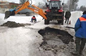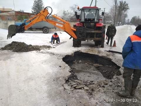 У середу, 30 січня, в Кам'янці-Бузькій через порив на центральному водогоні й витік великого об'єму води провалилася дорога.