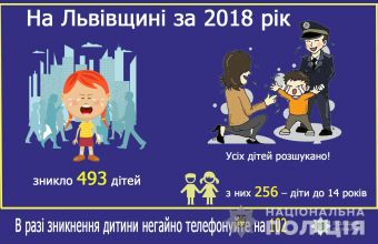 2018 року до поліції Львівщини надійшли 493 звернення про зникнення неповнолітніх, з яких 256 – діти віком до 14 років.