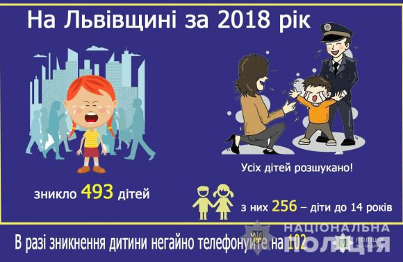 2018 року до поліції Львівщини надійшли 493 звернення про зникнення неповнолітніх, з яких 256 – діти віком до 14 років.