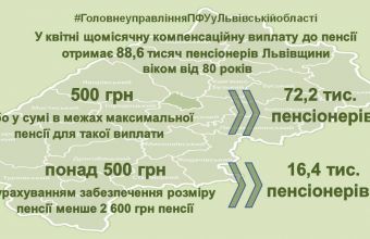 7 квітня, головне управління Пенсійного фонду України у Львівській області розпочало виплату компенсації до пенсії за квітень пенсіонерам старше 80 років.