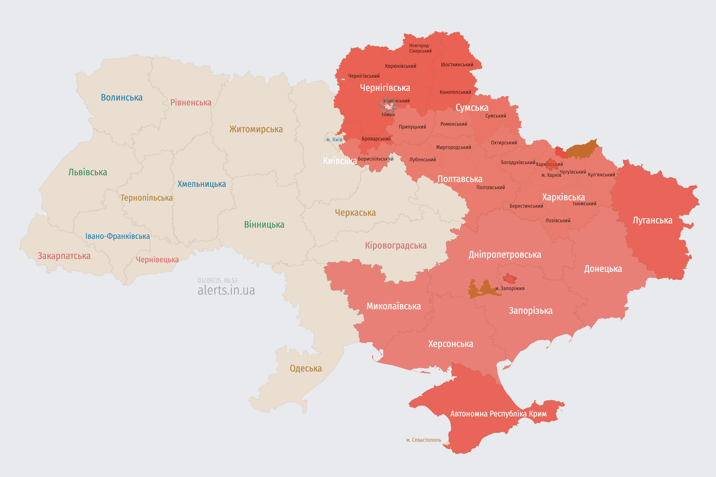 Дивіться мапу повітряних тривог.