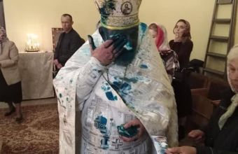 У Стрию на Львівщині священника УПЦ московського патріархату Володимира Мандзюка обурені люди облили зеленкою.