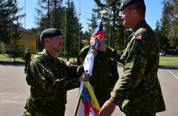 «Новий командувач Канадської сумісної оперативної групи в Україні, підполковник Уейн Нивен, офіційно і урочисто прийняв командування від підполковника Тіма Арсенаута. Команда з близько 200 канадських військовослужбовців прибула в Україну з місією проводити навчання з Збройними Силами України з питань навичок та володіння особистою зброєю, надання першої медичної допомоги, утилізація вибухонебезпечних боєприпасів тa саморобних вибухових пристроїв, методики військової поліції, модернізації військової підтримки, безпеки польотів а також підготовка з питань етики навчання.