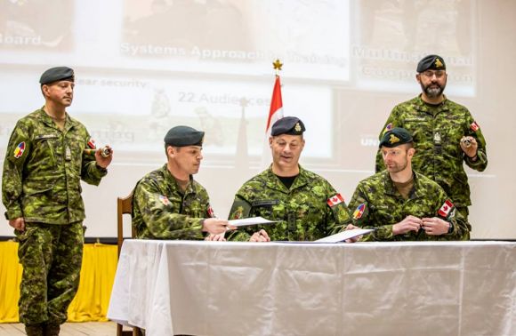 У містечку «Центральне» Міжнародного центру миротворчості та безпеки Національної академії сухопутних військ відбулася урочиста церемонія передачі повноважень особового складу канадського військового контингенту, який бере участь у підготовці бойових підрозділів ЗСУ в рамках «Об’єднаної багатонаціональної групи з підготовки – Україна».