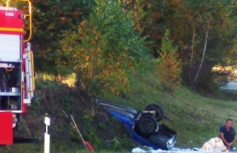 У понеділок, 14 жовтня, о 16:30 на трасі «Київ-Чоп» неподалік села Деревачі в Пустомитівському районі Львівської області злетів з дороги автомобіль «Славута».