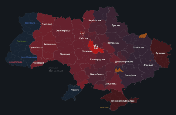 Повітряна тривога ще триває у більшості областей України.