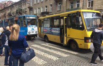 У понеділок, 15 травня, у Львові не розминулися трамвай та автобус