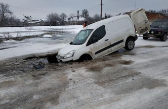 Про це повідомили на сторінці громадської організації «Варта 1» в інтернет-мережі «Facebook», де також опублікували фото з місця події й розповіли: «Як зазначають місцеві – дякуючи недбальству місцевої влади, яка вперто не хоче ремонтувати дорогу, під землю провалилось авто».