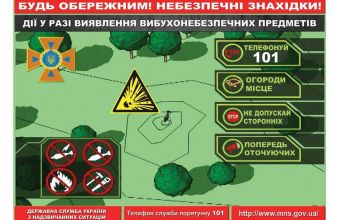 7. Негайно повідом про небезпечну знахідку органи місцевої влади, міліцію або підрозділ ДСНС України за телефоном 101!»