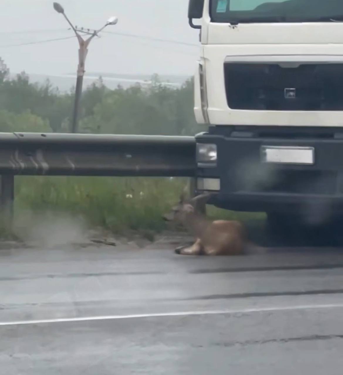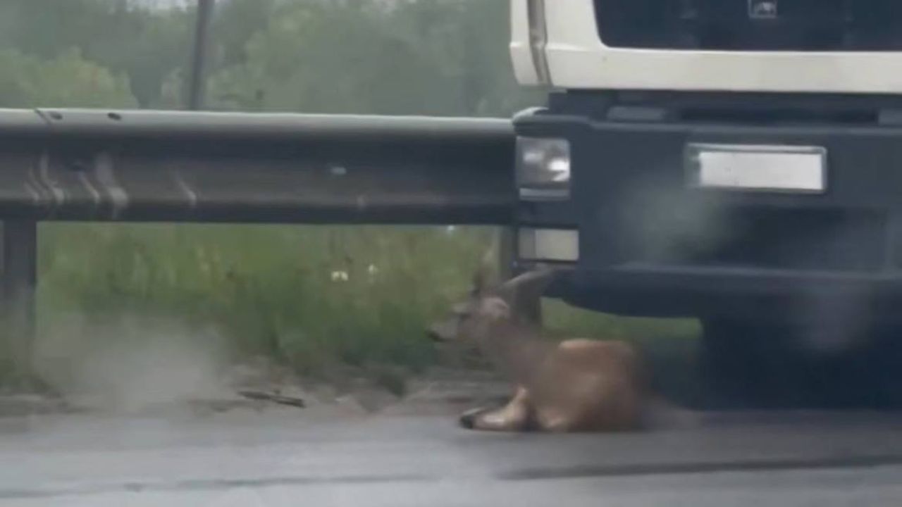На фото, яке поширюють, косуля лежить біля бампера вантажівки.