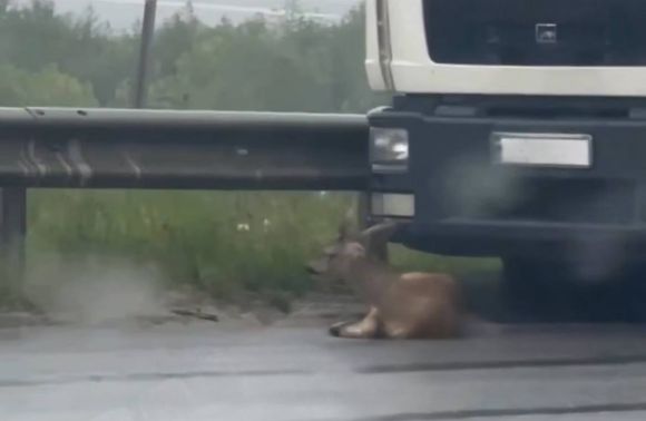 На фото, яке поширюють, косуля лежить біля бампера вантажівки.