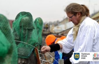 У прес-службі Львівської міськради повідомили сьогодні, 10 листопада, що на будинку Корнякта на площі Ринок, 6 убезпечили від можливого обвалу скульптури – накрили їх спеціальними сітками та захисними оболонками, які зафіксували спеціальними ременями, щоб ті не впали на перехожих.