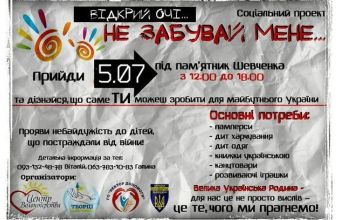 «5-го липня, в неділю, відбудеться чергова збірка необхідних речей для сімей, що постраждали від війни! В списках найнеобхіднішого все ті ж речі: памперси та дитяче харчування, канцтовари, підручники, книжки українською, одяг віком від 0 до 16 років, розвиваючі іграшки, ліжечка, ходунки, годувальні столики!