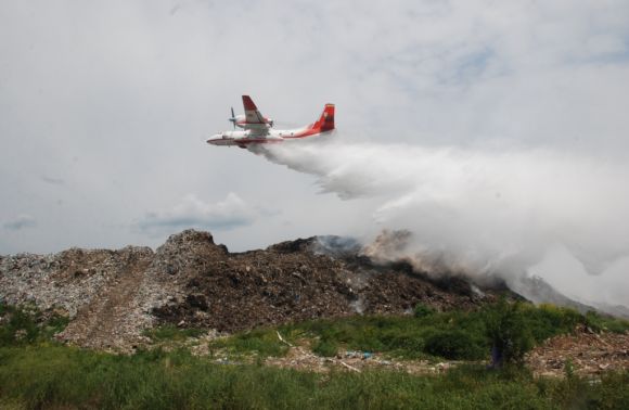 До ліквідації займання на полігоні твердих відходів залучено 56 рятувальників і 12 одиниць спецтехніки.