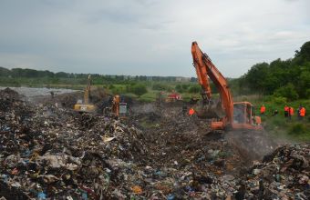 На сміттєзвалищі неподалік Львова укріплюватимуть вночі дамбу (+відео)