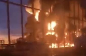 Очевидці повідомляють про пожежу на «Смоленському нафтопереробному заводі» у Росії.